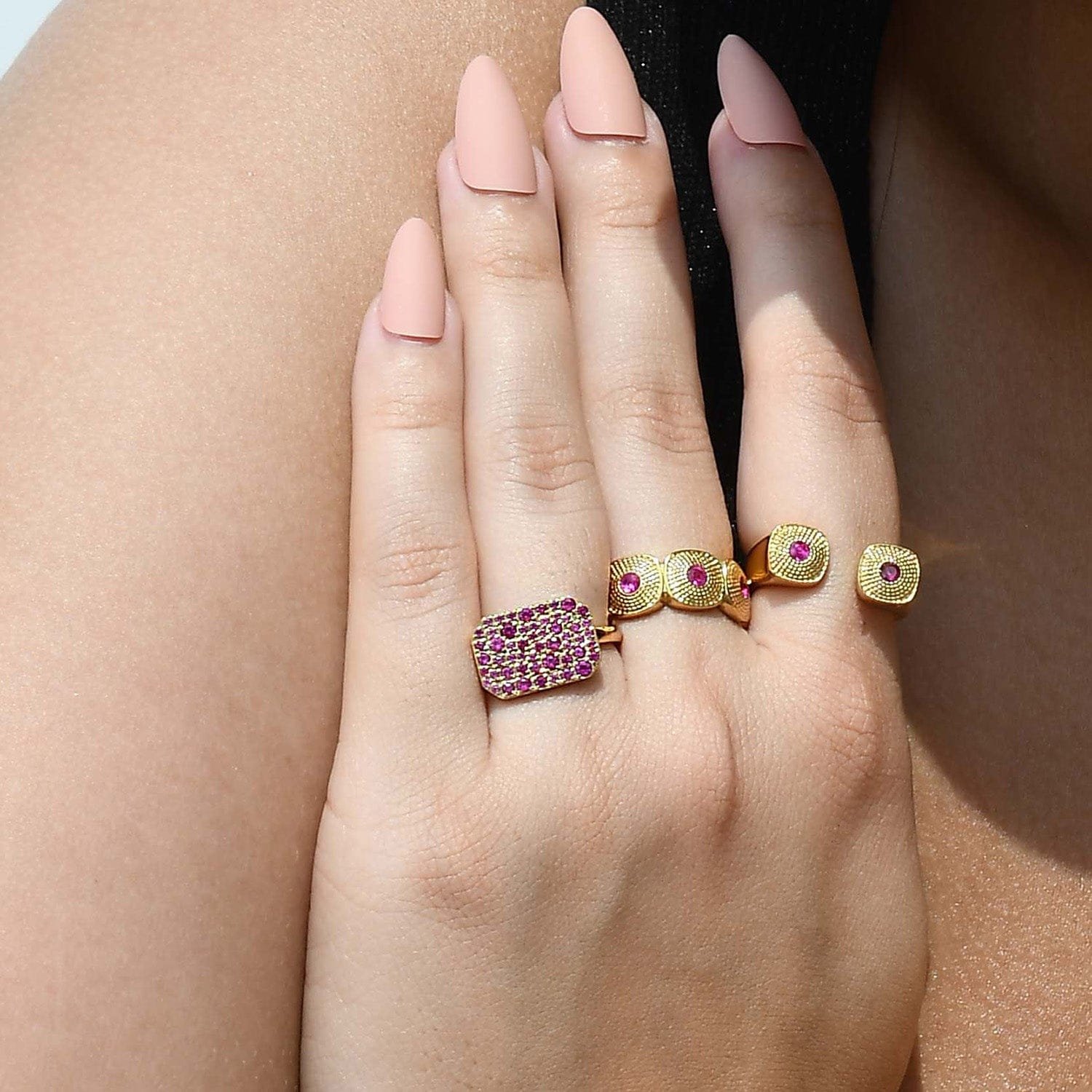 The Pinnacle of Gilded SophisticationStep into the spotlight with the Roseate Bullion Finery Ring. This piece is a masterclass in texture and tone, designed for the individual who views jewelry as an extension of their personality. With its rich bullion-inspired detailing, this ring captures the essence of classic wealth reimagined for modern fashion.Exclusive Features:Authentic 22KT Gold Plating: A thick, lustrous coating of real gold provides a deep, warm finish that mirrors solid gold finery.Premium Brass Alloy Base: Engineered for durability and a high-end weight that feels substantial on the finger.Unique Roseate Texture: Featuring delicate "roseate" patterns and bullion-style engraving that reflects light from every angle.Artisanal Quality: Hand-finished to ensure every curve and ridge meets the highest standards of luxury.Style & Versatility:The Roseate Bullion Finery Ring is designed to be the centerpiece of your look. Whether paired with a sharp blazer for a power meeting or an elegant evening gown, its