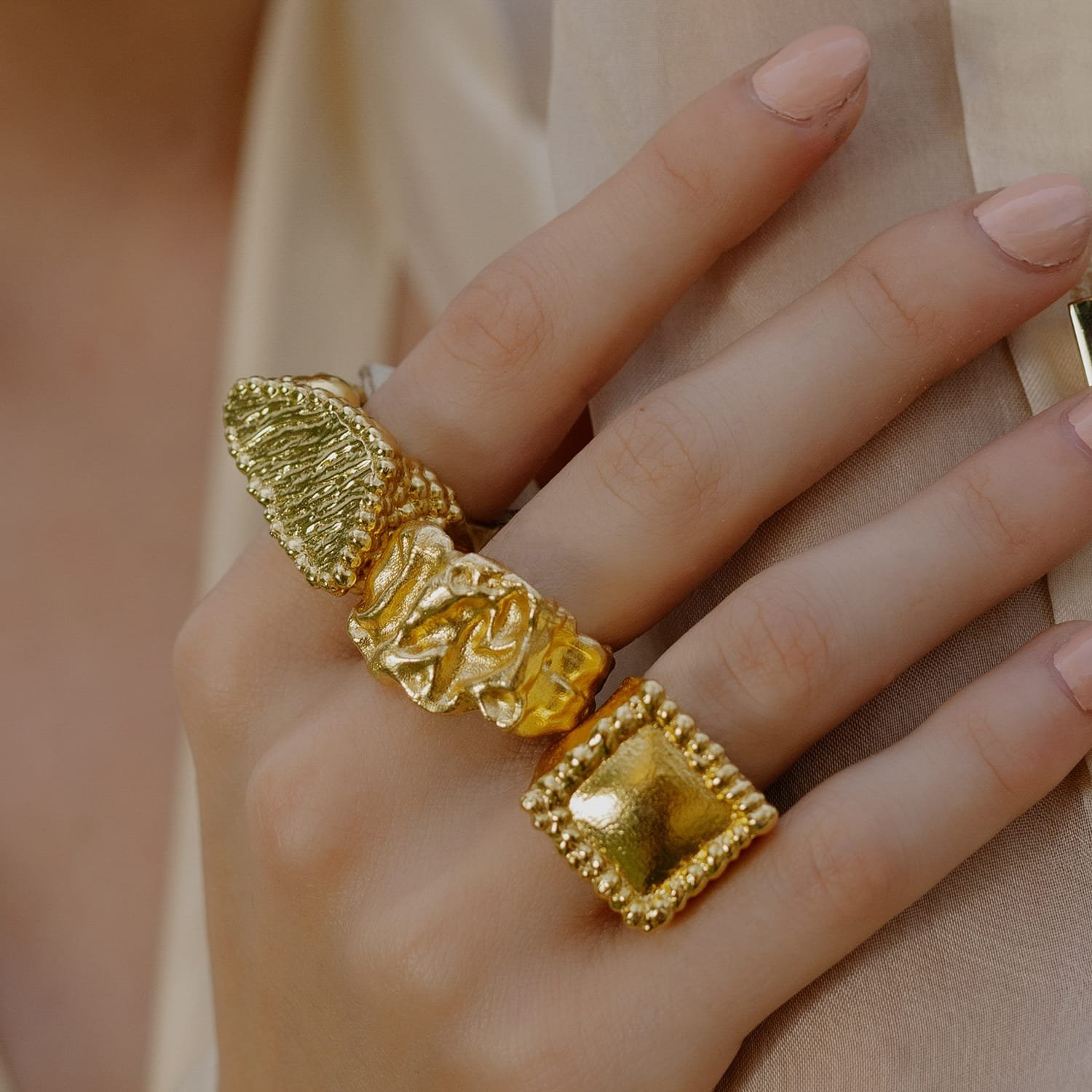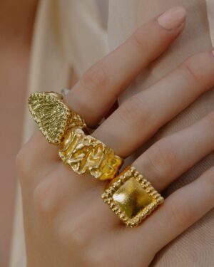 The Rugged Plateau Ring is a perfect blend of raw texture and refined luxury. Designed with a rugged plateau-inspired surface, this ring symbolizes strength, individuality, and confidence.Crafted using premium brass alloy and finished with 22KT real gold plating, it delivers the look of fine gold jewelry while remaining lightweight and durable. Its unisex design makes it ideal for both men and women, whether styled casually or with ethnic and formal outfits.This ring is skin-friendly, nickel-free, and lead-free, making it safe for long-hour wear. Whether you’re buying for yourself or gifting someone special, this piece stands out as a timeless accessory. Ideal for:Daily wearCouple ringsMinimal statement jewelry loversFestive & casual stylingThoughtful gifting