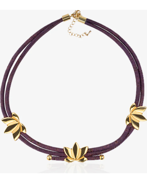 Our handmade jewellery is the ideal complement for a modern woman who makes distinctive daily choices. The Sacred lotus necklace is handcrafted in Cork with 18K gold-toned embellishments and comes in a striking purple cork fabric thread.