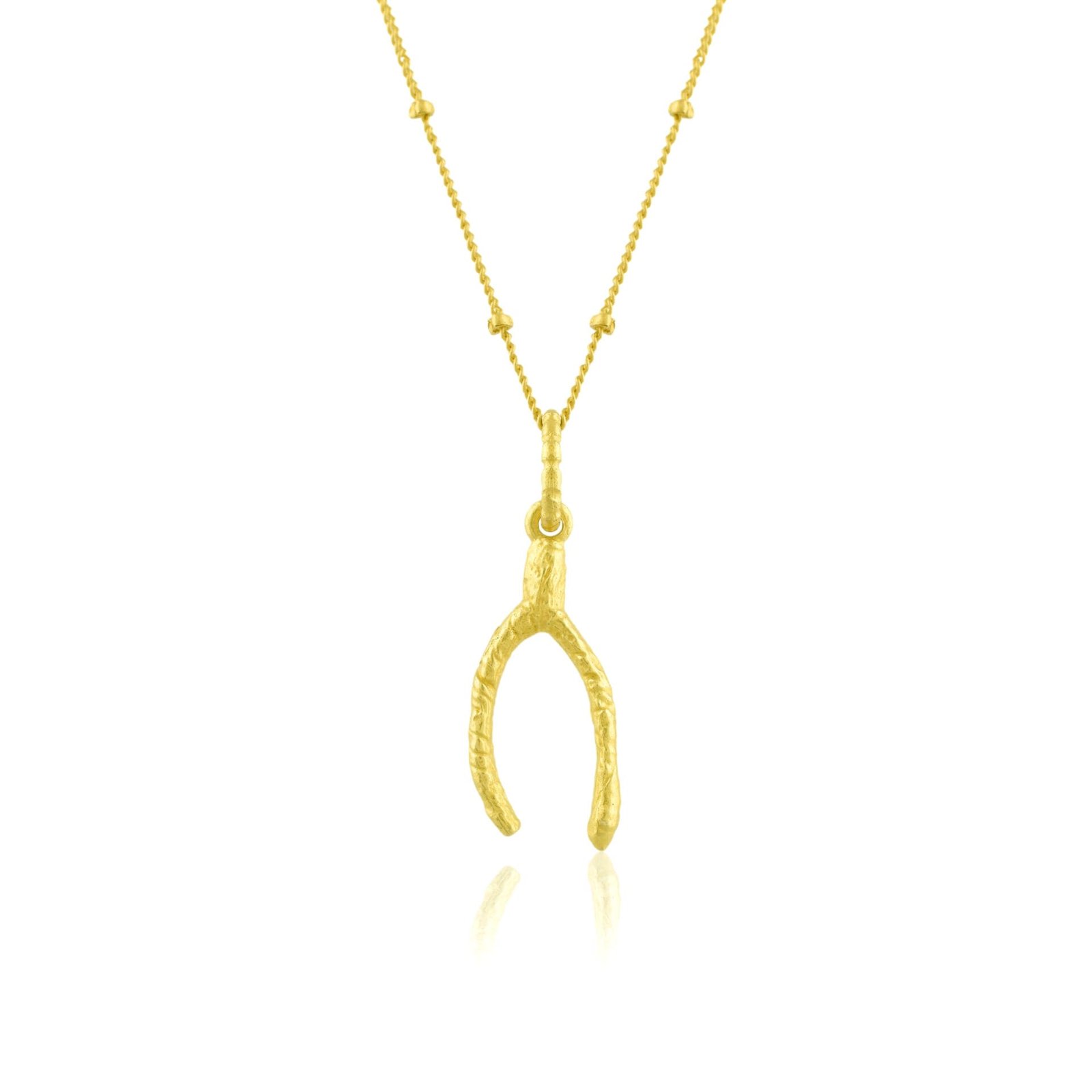 Scraggy Wishbone Luck Necklace for Women | Sterling Silver Wishbone Pendant | 22KT Gold Plated Lucky Charm Necklace