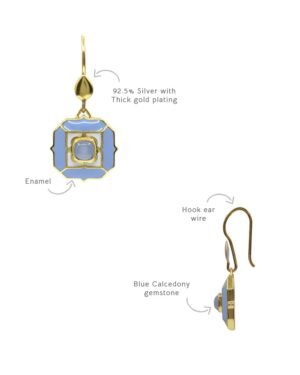 These easy to wear?Sea Breeze Earrings?brings a fresh pop of color to your style. These earrings are handcrafted in 92.5% silver, with thick gold plating & with enamel details, super easy to wear with ear wire mechanism., Plating: Gold Plated, Metal Type: 92.5% Sterling Silver, Enamel / plating / gemstone: Natural gemstone Blue Calcedony, Lock Mechanism: Ear wire hook, Measurement cm : 3.2cm , Measurement inches: 1.25 inch, Care Instruction: Keep away from water, perfume and other liquids. Do not use any cleaning agents. Clean when storing in the provided pouches. Store them in moisture free areas and keep them away from water and liquid fragrances.