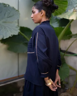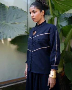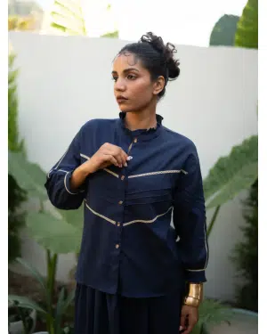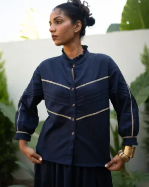 Crafted in breathable cotton, this top features intricate lace-insert panels and soft ruffled accents at the collar and sleeves. A beautifully detailed silhouette that blends comfort with artisanal elegance.