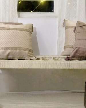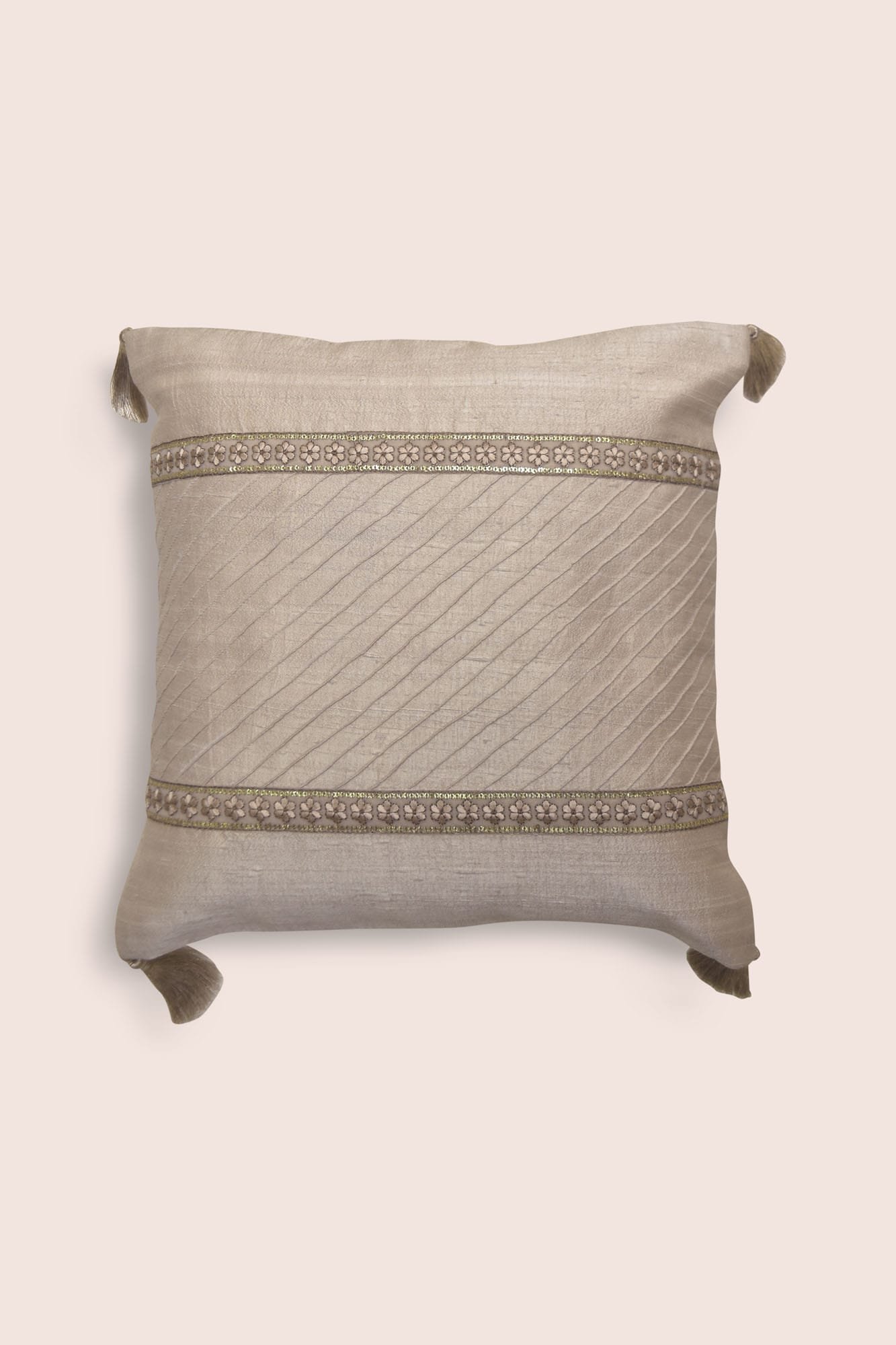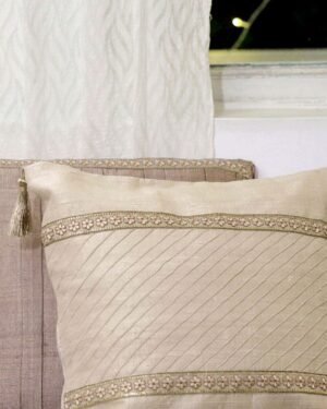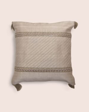 Your search for the perfect festive gift ends here with the Sequoia 16’ x 16’ inch cushion. Discover the smooth texture of the handwoven Dupion silk fabric and the uniformly pleated design on the cushion. The Sequoia cushion is decorated with a hand-embroidered border and four zaree tassels on the corners.
