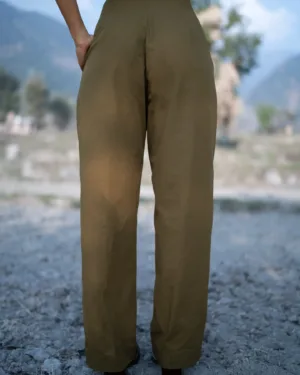 Crafted in breathable linen fabric, this olive pant features fine pleats at waist to give the accentuate fit and straight fit till hem. Model height 5'4 and wearing a size S