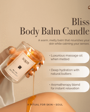 A warm body balm candle melting into a lightweight s
