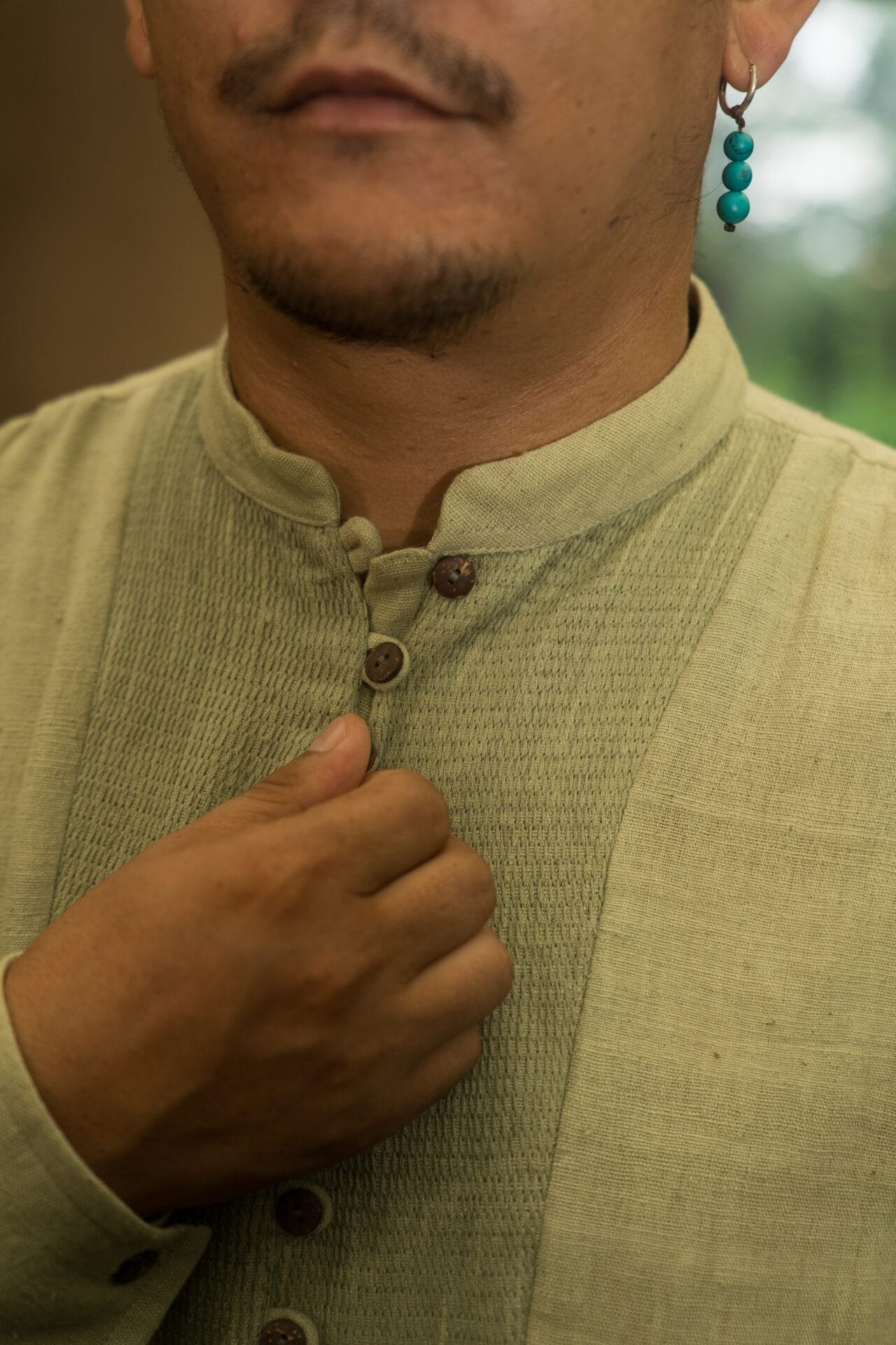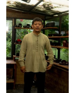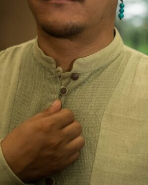 Cut from airy kala cotton, this unisex button-front shirt has an oversized cut that cinches with drawstring ties at the chest and waist. Making it a beautiful beach cover up or weekend shirt paired with relaxed pants.; Craft: Handloom Weaved, Material: Lotus Silk, Return Policy: Non-Returnable, Shipping: 8 to 10 Working Days, Fit: Loose, Occasion: Casual, Sleeve: Yes, Care Description :"Washing Instructions: Fill your bucket with cold water, turn your Lotus silk item inside out, and submerge it. It comes to washing your Lotus silk item, your best bet is to use a high-quality liquid detergent. Add a few detergent drops into the water and stir it well, then leave your item in the solution for three minutes. Gently pull your garment up and down for three to five minutes to remove any dirt. Take your garment out from the sink, drain off the water, and rinse under cold water