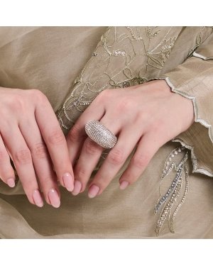 Illuminate Your Style with Celestial RadianceThe Starlit Pave Dome Ring is where bold modern architecture meets timeless glamour. Designed for the woman who isn't afraid to shine, this chunky dome ring provides a luxurious weight and a brilliant sparkle that captures the light from every angle.Exquisite Materials & FinishPremium Base: High-grade Brass Alloy for a substantial, high-end feel and durability.Luxury Plating: Thick 22KT Real Gold Plating ensures a deep, authentic golden glow that lasts.The Starlit Effect: Hand-set, precision-cut AAAAA Cubic Zirconia stones in a seamless pave setting.Why You'll Love ItBold Yet Comfort Fit: Despite its "chunky" aesthetic, the inner band is polished to a mirror finish, ensuring it glides on smoothly and stays comfortable all day.Versatile Statement: Transition effortlessly from a power meeting at the office to a moonlit dinner. It?s the ultimate accessory for the modern trendsetter.Hypoallergenic: Lead and nickel-free, making it safe for sensitive skin without compromising on