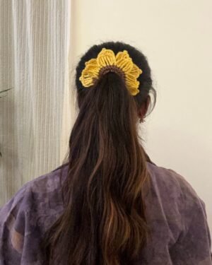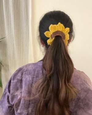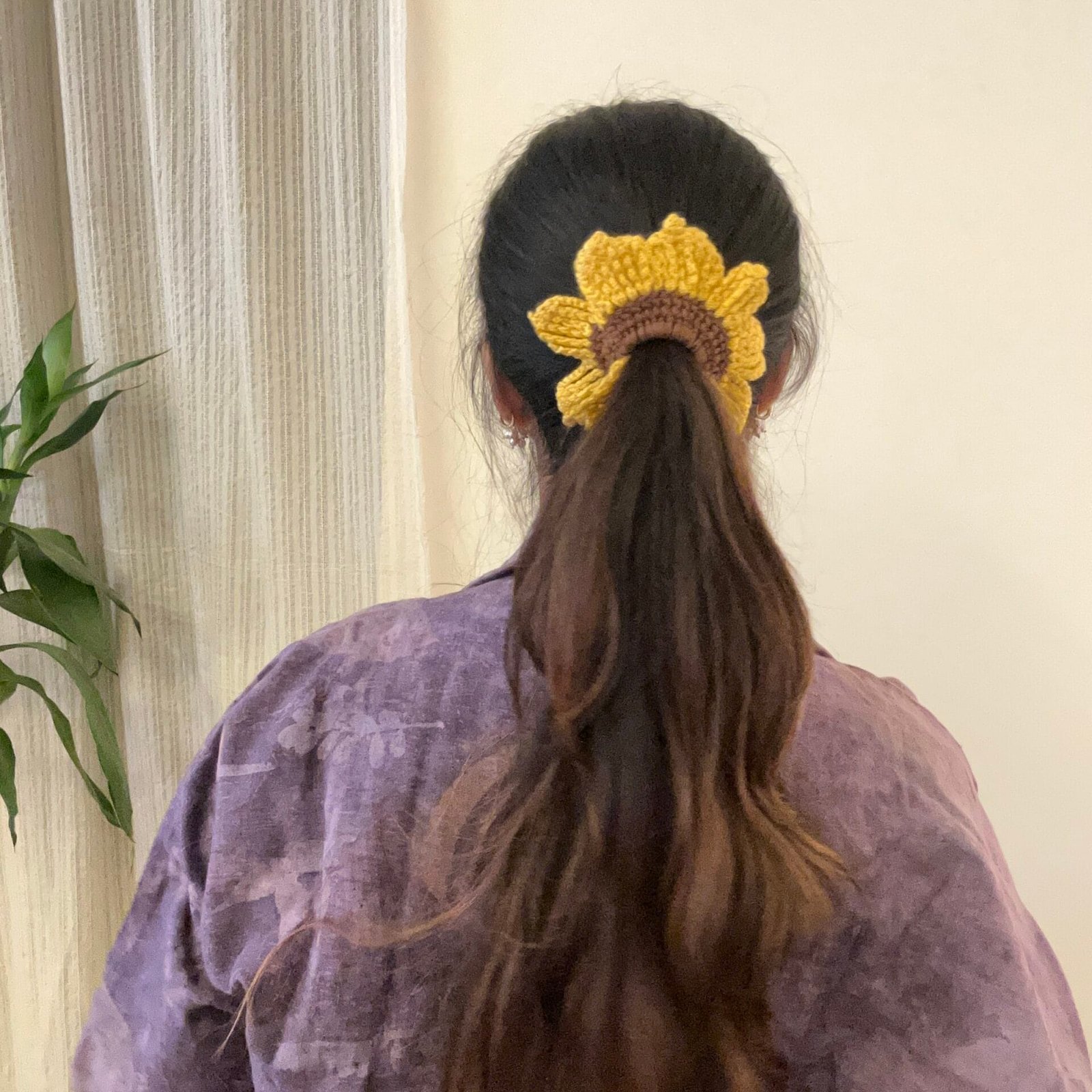 A joyful hand-crocheted scrunchie inspired by blooming sunflowers?sunny, striking, and full of warmth. Made to brighten up buns, braids, and everyday moments.