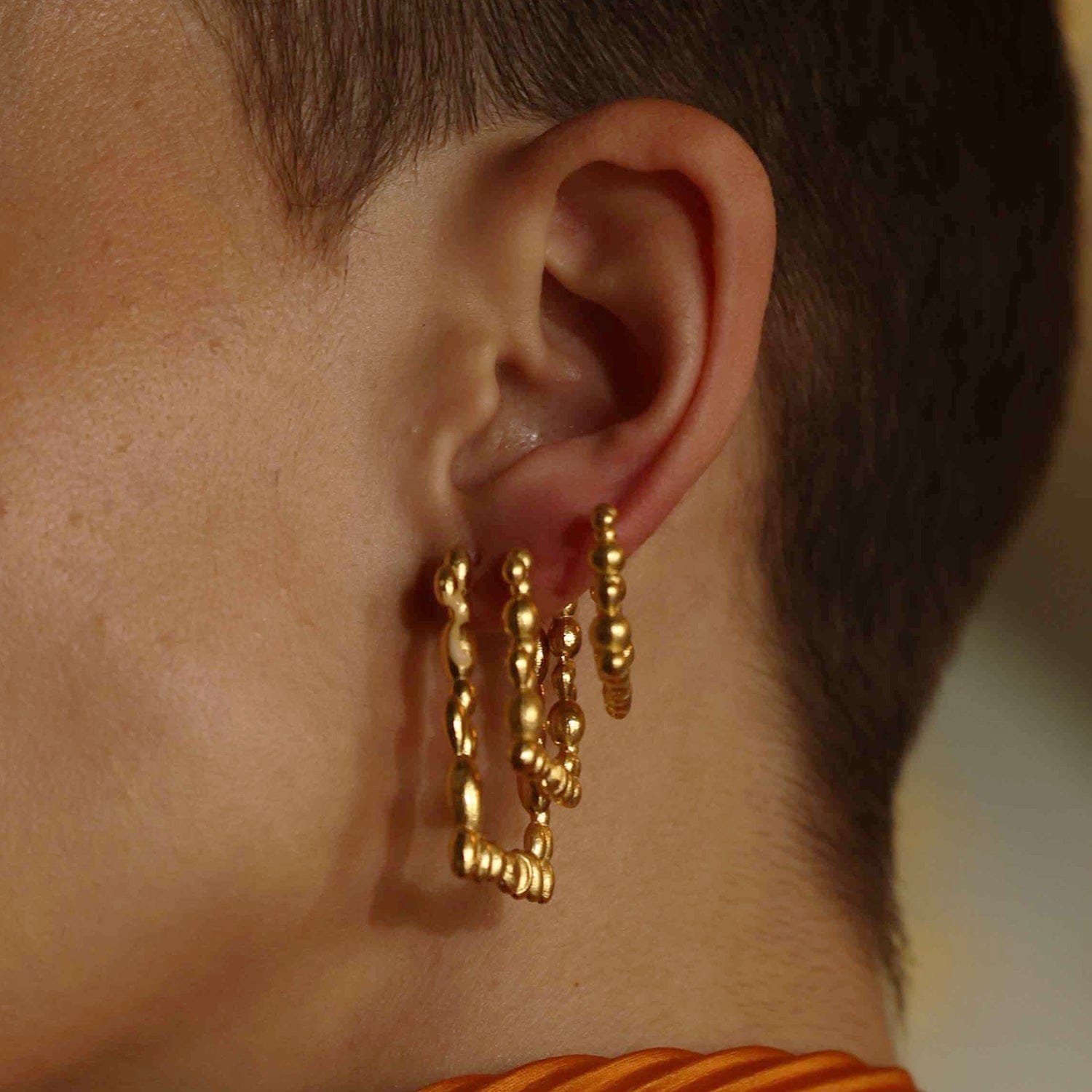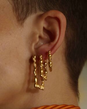 Glow with Elegance: Sunlit Ripple 22KT Gold Plated Large HuggiesStep into the light with the Sunlit Ripple Large Huggies. Designed for the woman who loves a blend of classic hoop silhouettes and modern textures, these earrings feature a distinct "ripple" pattern. This craftsmanship ensures that with every move you make, the 22KT gold surface reflects a brilliant, sun-kissed glow.Premium Features & QualityLustrous 22KT Gold Finish: Our earrings are plated with genuine 22KT gold, providing a rich, deep yellow-gold hue that looks and feels like luxury.Unique Ripple Texture: Moving away from plain hoops, the sunlit ripple design adds a sophisticated, artistic touch to your jewelry collection.Large Huggie Style: Enjoy the bold look of a hoop with the secure, "huggie" click-to-close fit that ensures they stay safely in place.Hypoallergenic Brass Alloy: Crafted with a premium brass base that is nickel-free and lead-free, making them safe for sensitive ears.Style & OccasionThese large huggies
