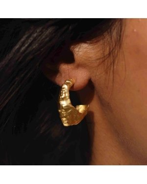 Artisan Elegance: 22KT Gold Plated Tapered Hammered HoopsElevate your accessory game with our Tapered Foil Hammered Hoops. Designed for women and girls who love jewelry with character, these hoops move away from the ordinary. The "foil hammered" finish creates an organic, multi-faceted surface that catches the light beautifully, providing a warm, sun-kissed glow to your face.Premium Quality & Design HighlightsGenuine 22KT Gold Plating: Thickly plated with real 22KT gold for a rich, deep luster that ensures a luxurious look and long-lasting finish.Unique Tapered Silhouette: The hoops feature a modern tapered design?thicker at the bottom and slimming toward the top?for a flattering, high-fashion profile.Handcrafted Foil Texture: The hammered surface mimics the look of delicate gold foil, adding an artisan, expensive feel to your jewelry collection.Lightweight Brass Alloy: Crafted from premium brass, these earrings provide a bold statement look without the heavy weight, ensuring comfort for all-day wear.Style & VersatilityThese hammered gold
