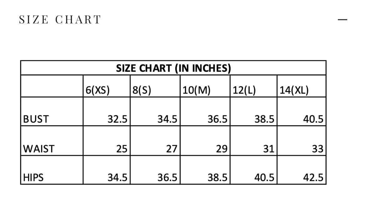 | Size | Bust (Inches) | To Fit Waist (Inches) | Across Shoulder (Inches) | Hips (Inches) | Front Length (Inches | Inseam Length (Inches) |