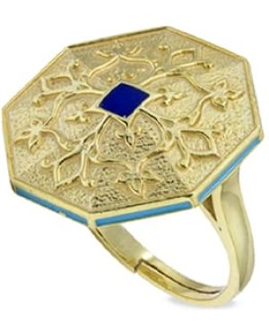 Tibari ring is handcrafted in 92.5% silver, with thick gold plating. This ring is adjustable and can be fixed easily by you. The ring has beautiful enameling details in color., Plating: Gold Plated, Metal Type: 92.5% Sterling Silver, Enamel / plating / gemstone: Gold oxidised, Lock Mechanism: Adjustable Ring, Measurement cm : diameter 2.2 cm , Measurement inches: diameter -.875 inch, Care Instruction: Keep away from water, perfume and other liquids. Do not use any cleaning agents. Clean when storing in the provided pouches. Store them in moisture free areas and keep them away from water and liquid fragrances.