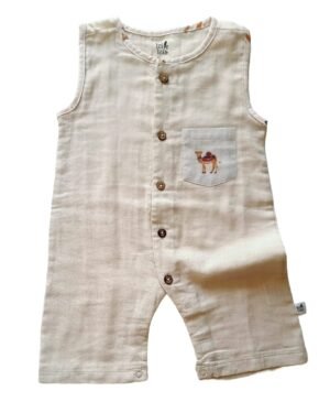 100% organic muslin cottonCute pocket details in Gender Neutral PrintsLightweight and extremely soft, perfect for summerCute Neutral PrintsPoppers in the front help with easy pull up over the head