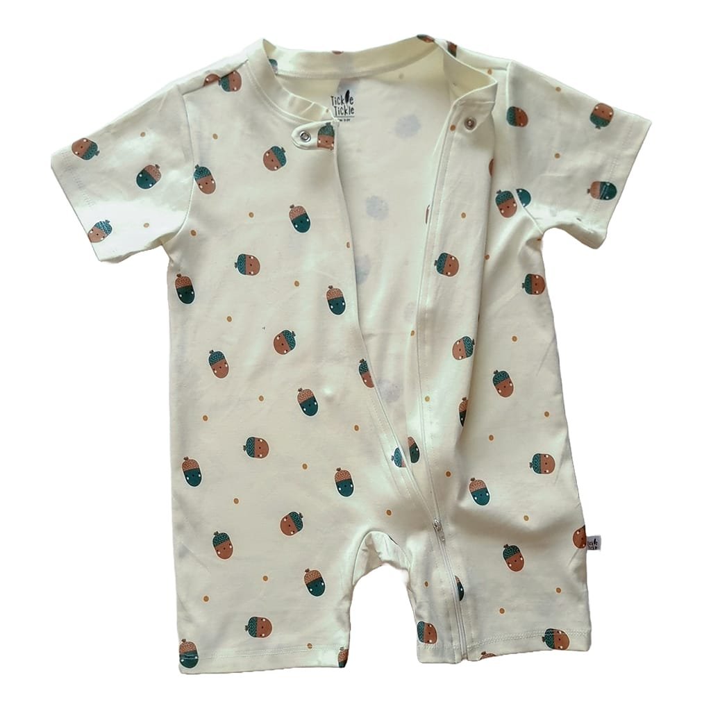 100% organic interlock cottonZiplock safety feature at the neckZipper style makes diaper changes a breezeLightweight and extremely soft, perfect for summerCute Neutral PrintsNo snaps, buttons or interior tags