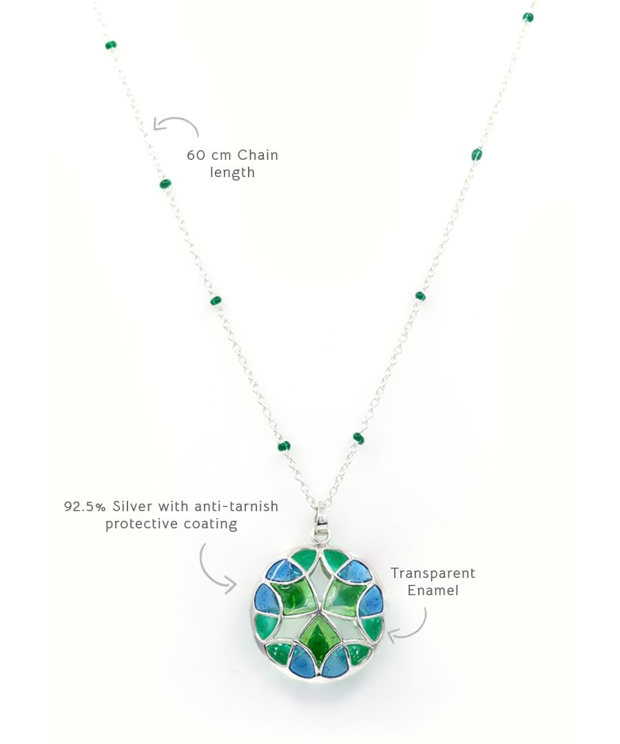 This treasure pendant is handcrafted in 92.5% silver, has an anti tarnish protective coating. It's exquisite enamel details gives of timeless radiance in vibrant colors. it has a ring clasp lock that can be fixed easily by you., Plating: Silver Ani-tarnish, Metal Type: 92.5% Sterling Silver, Enamel / plating / gemstone: Transparent Enamel, Lock Mechanism: Ring clasp lock, Measurement cm : Pendant - 3cm / chain