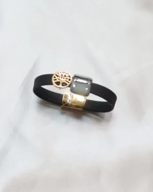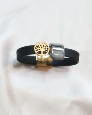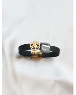 Experience the Tree of Life Cork Bracelet, a symbol of growth and connection. This unique accessory features a flat magnetic clasp and black cork made from natural bark. The 18k gold brass Tree of Life charm represents interconnectedness and vitality, making this bracelet meaningful and stylish for nature and elegance lovers.