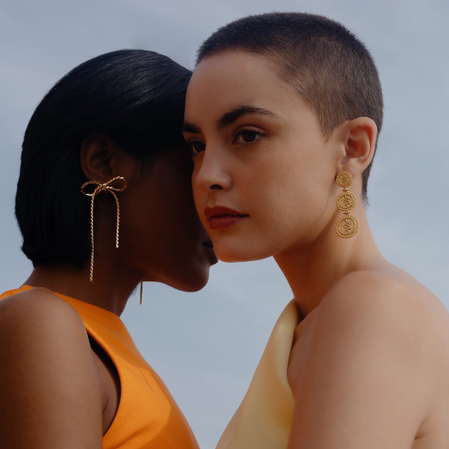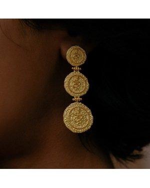 These exquisite earrings feature three meticulously crafted coins, each embossed with a serpent, an ancient symbol of go