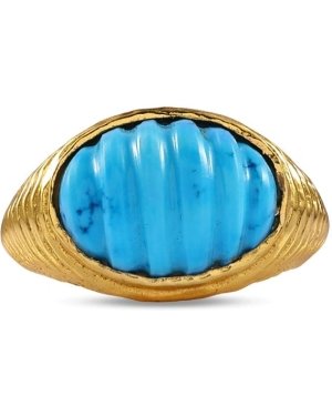 Inspired by fluid motion and natural beauty, the Turquoise Ripple Ring is a timeless expression of elegance and tranquility. Featuring a vibrant turquoise centerpiece, the ripple-inspired design adds depth, movement, and a refined artistic touch.Expertly crafted with a durable premium brass alloy and finished in 22KT real gold plating, this ring offers a rich golden glow while remaining lightweight and comfortable for daily wear. The soothing turquoise hue makes it a versatile piece that complements both modern and traditional looks.Key features:Elegant ripple-style ring with vibrant turquoise detailing22KT real gold plating for a luxurious, long-lasting finishPremium brass alloy construction for durability and comfortNickel-free, skin-friendly, and lightweightPerfect for daily wear, casual outings, festive occasions, and giftingWear it as a statement piece or pair it with minimalist jewelry for a refined layered look. The Turquoise Ripple Ring makes a thoughtful gift for birthdays, anniversaries, or anyone who appreciates nature-inspired elegance.