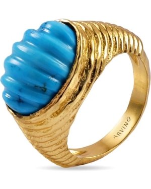 A graceful turquoise ripple ring crafted with 22KT real gold plating on premium brass alloy. Designed to bring calming c