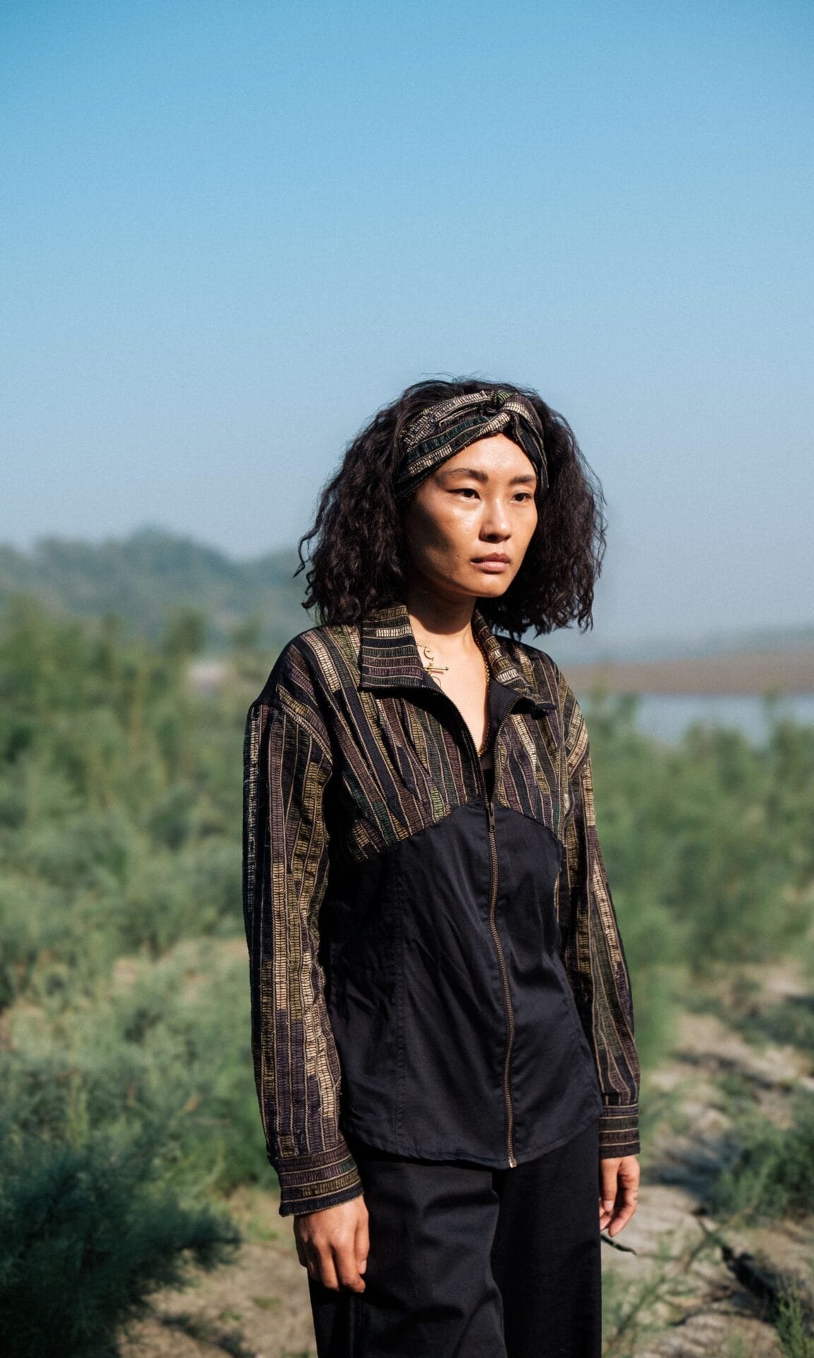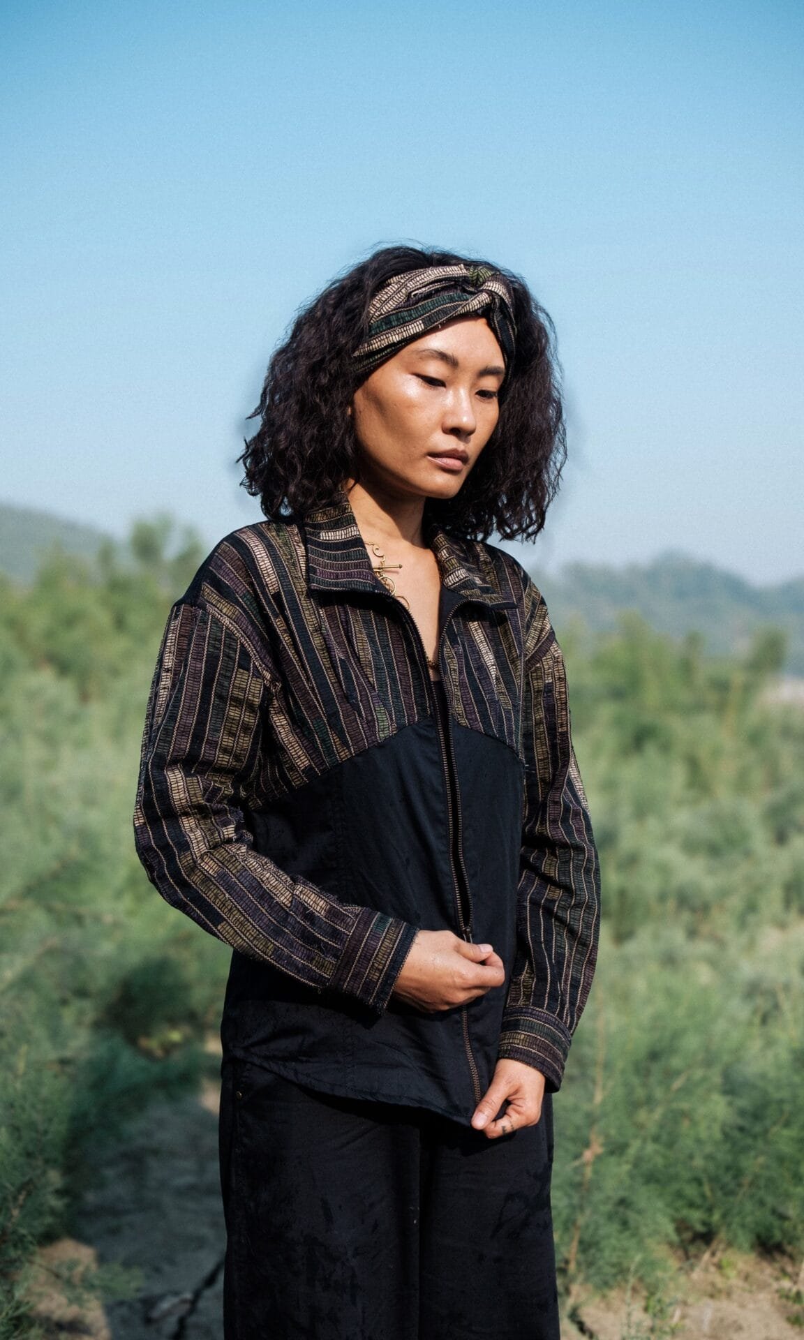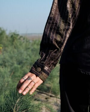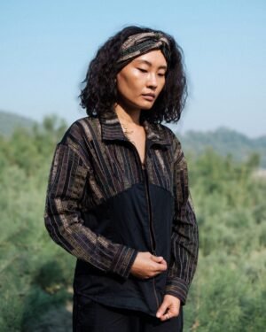 The garment is made from hand woven upcycled fabric and so the color might vary slightly for each batch.