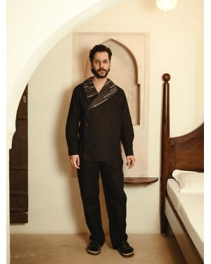 This shirt featuring a statement collar is the perfect balance between classic and edgy, pairs perfectly with our straight pants.The collar is designed from upcycled fabric, made using post production waste.