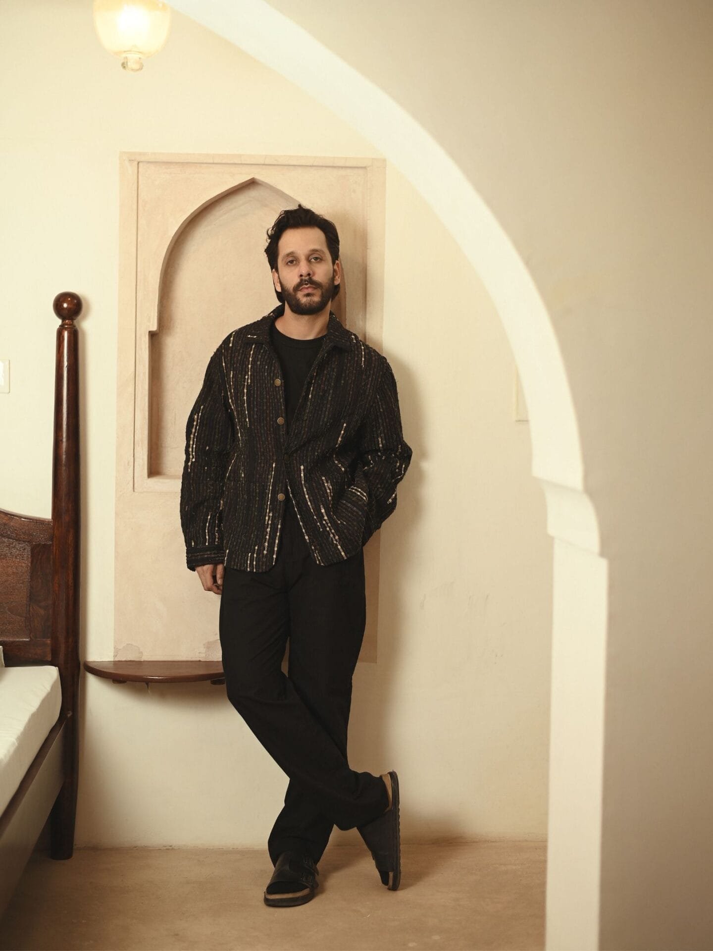 This collar jacket is designed from upcycled fabric, made using post production waste and can elevate any look.