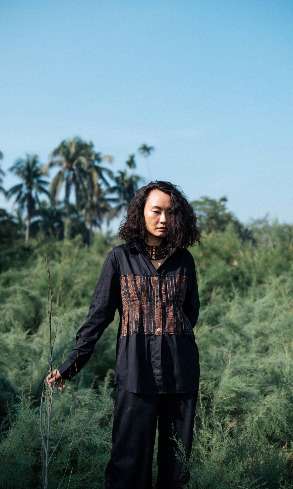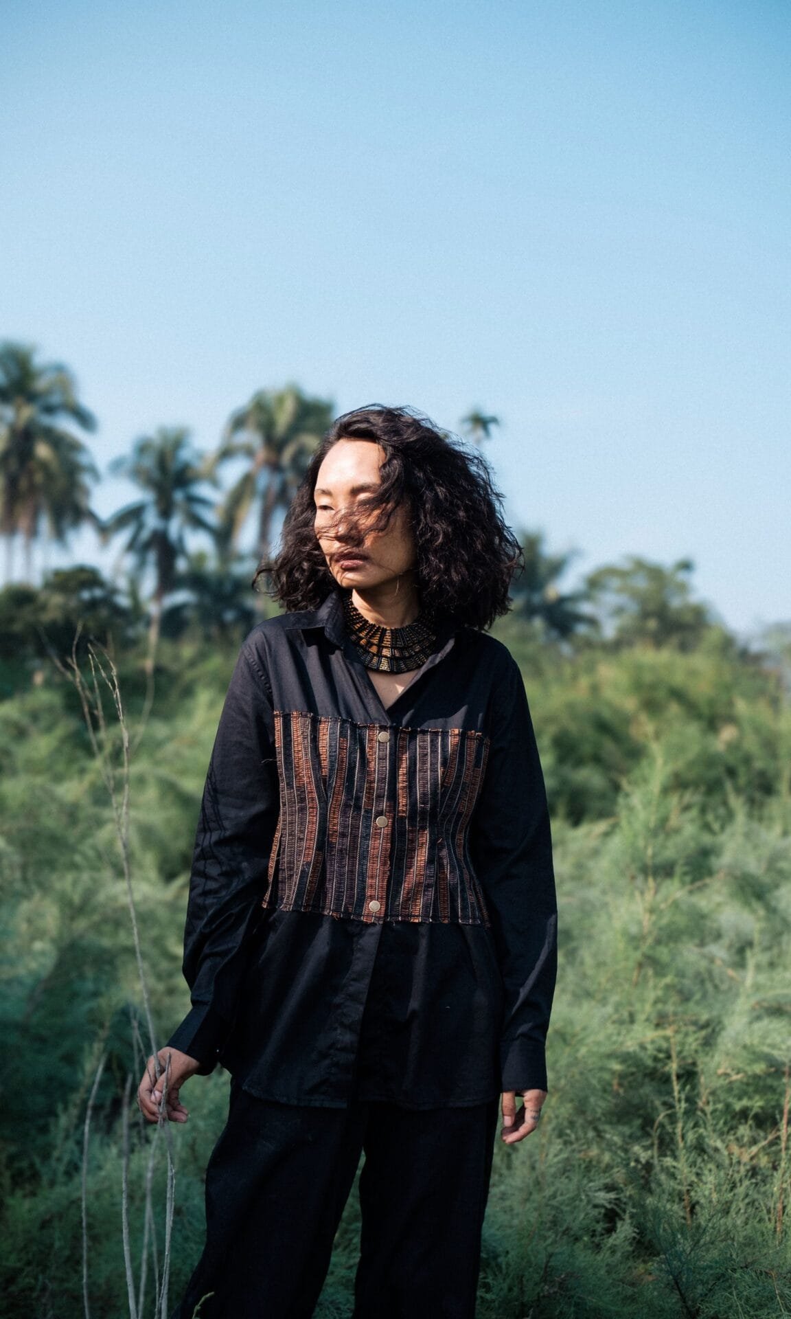 This shirt features a patch detail designed from upcycled fabric, made using post production waste, creating the most perfect cinch on the waist. An elevated classic shirt that pairs perfectly with our barrel pants.