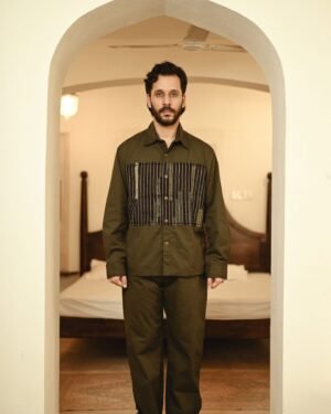 The garment is made from hand woven upcycled fabric and so the color might vary slightly for each batch.