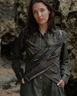 The garment is made from hand woven upcycled fabric and so the color might vary slightly for each batch.