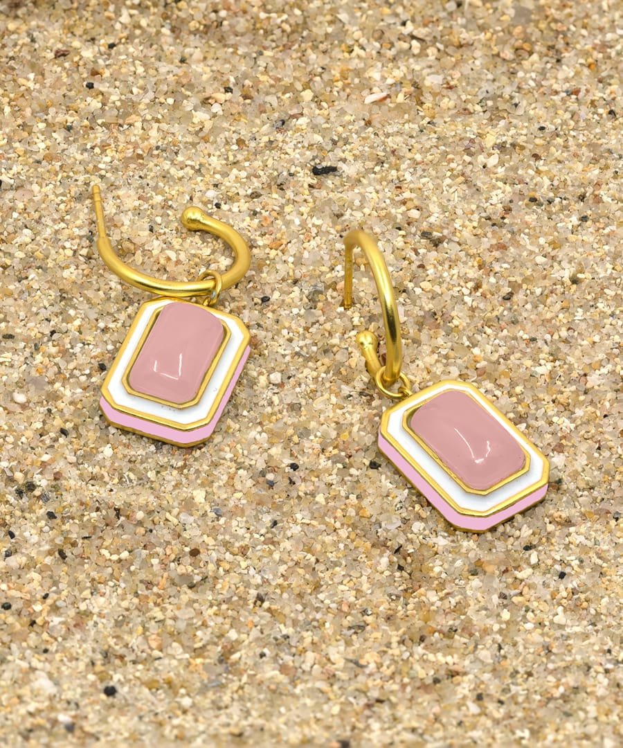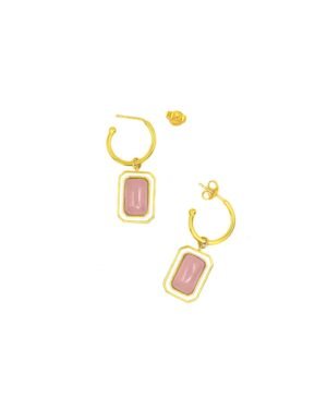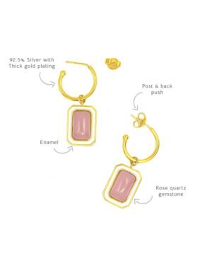 The C-hoop earrings are handcrafted in 92.5% silver,with thick gold plating with enamel details. These earring has a post with push back and has a natural gemstone called rose quartz, these earrings are super light and easy to wear., Plating: Gold Plated, Metal Type: 92.5% Sterling Silver, Enamel / plating / gemstone: Natural gemstone Rose Quartz, Lock Mechanism: Post and push back, Measurement cm : 3.2cm , Measurement inches: 1.25 inch, Care Instruction: Keep away from water, perfume and other liquids. Do not use any cleaning agents. Clean when storing in the provided pouches. Store them in moisture free areas and keep them away from water and liquid fragrances.